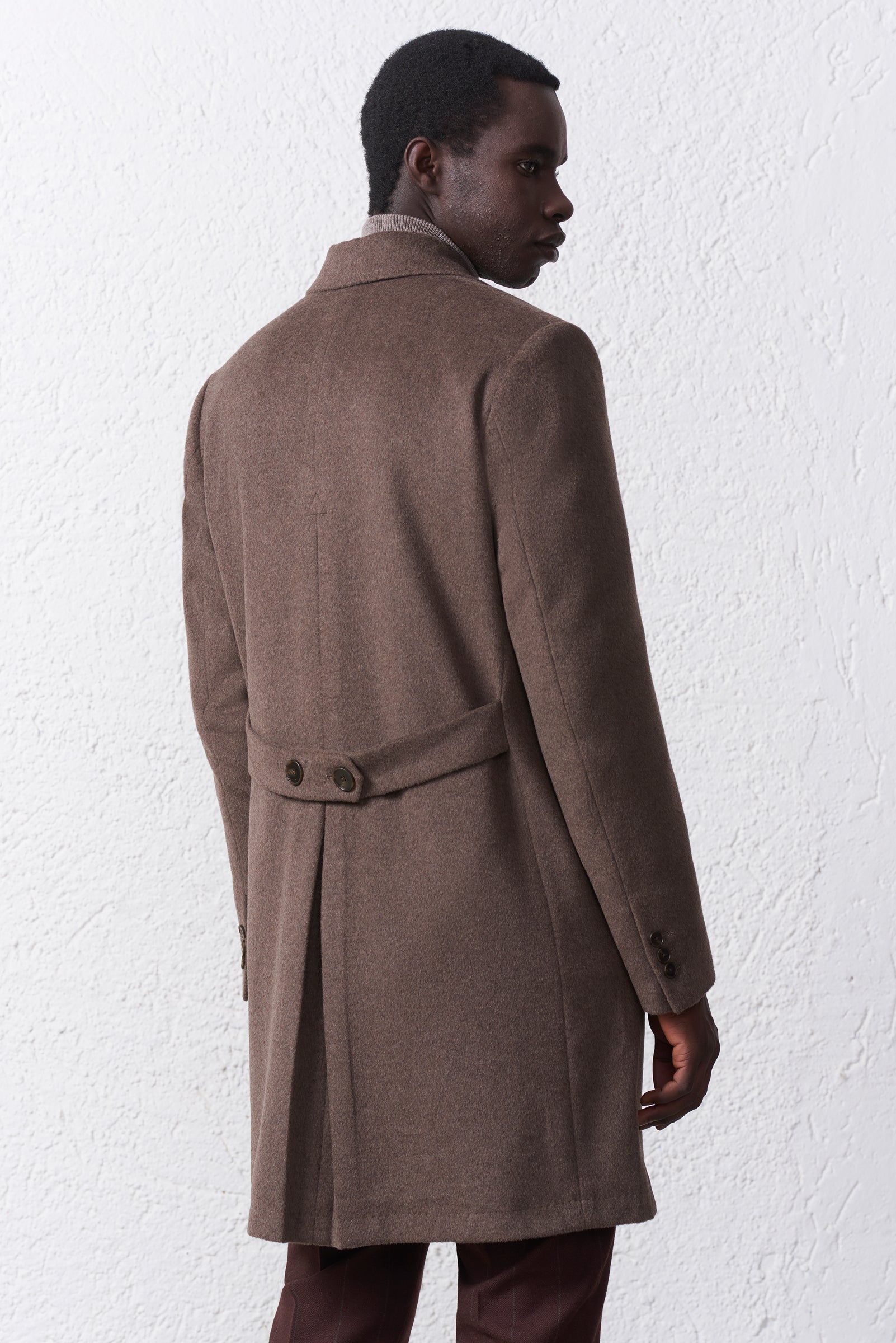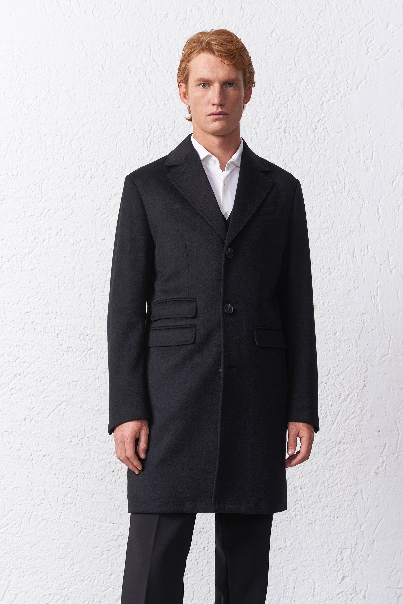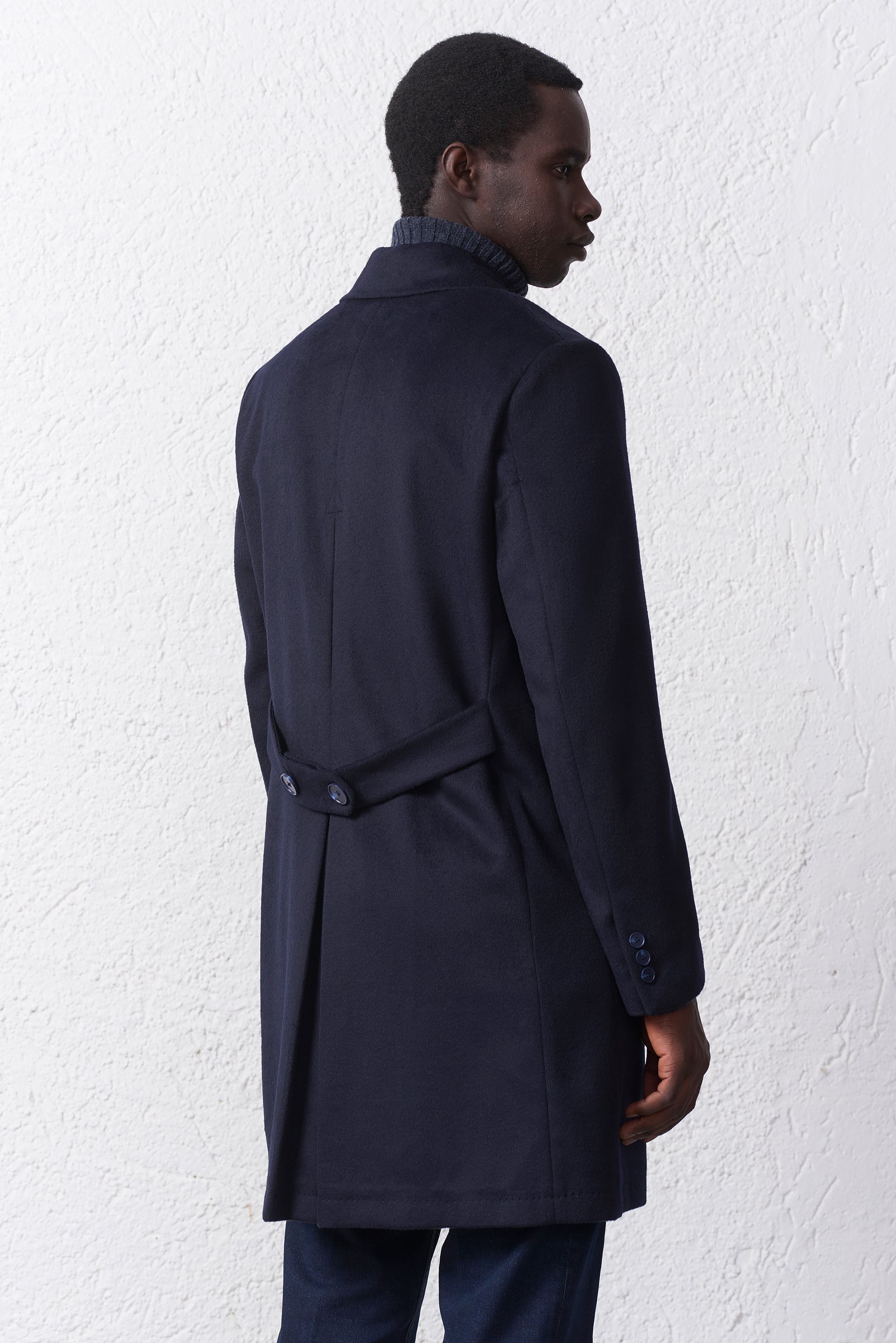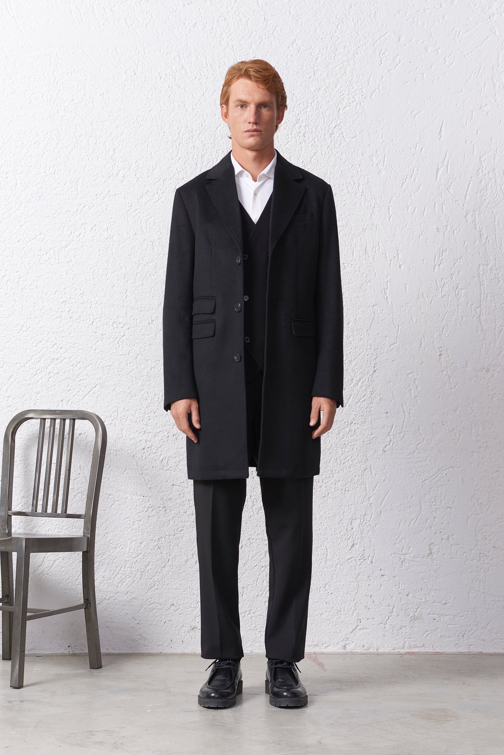 Cappotto uomo modello baronetto, confezionato in un pregiato tessuto misto lana a pelo corto, perfetto per offrire sia isolamento termico che una sensazione di leggerezza e praticità nell’uso quotidiano. La linea è moderna ed essenziale, caratterizzata da una chiusura frontale monopetto a due bottoni e dal classico collo a revers. Sul davanti sono presenti tasche a filetto e un taschino sul petto, dettagli di ispirazione sartoriale che donano pulizia e funzionalità. Il retro del capo si distingue per la presenza della martingala con doppio bottone, pensata per offrire maggiore definizione alla silhouette e valorizzare lo spacco centrale, dettaglio che facilita i movimenti e garantisce comfort in ogni situazione. Il misto lana pelo corto conferisce al cappotto una texture raffinata e resistente, ideale sia per abbinamenti formali che casual.