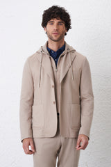Giacca in Maglia Uomo con Cappuccio e Pettorina Removibile