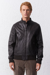 Il giubbino in vera pelle è un must-have del guararoba maschile. I bordi a costine e le tasche oblique rendono questo capo ideale per il tuo outfit casual.