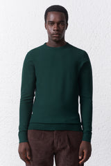 Maglia girocollo uomo in misto viscosa, lavorata secondo la tecnica della calatura che garantisce resistenza e una rifinitura sartoriale impeccabile. L'articolo si distingue per la trama tono su tono, dal sofisticato motivo a spina di pesce, che dona profondità e personalità al capo senza eccessi. Il tessuto misto viscosa assicura leggerezza, piacevole elasticità e comfort prolungato, ideale sia per look business che smart casual. Lavorazione con costine 1/1 su polsi, fondo e girocollo per stabilità e vestibilità perfetta. Disponibile nei classici colori blu, panna e verde, è pensata per inserirsi con facilità nei guardaroba contemporanei.