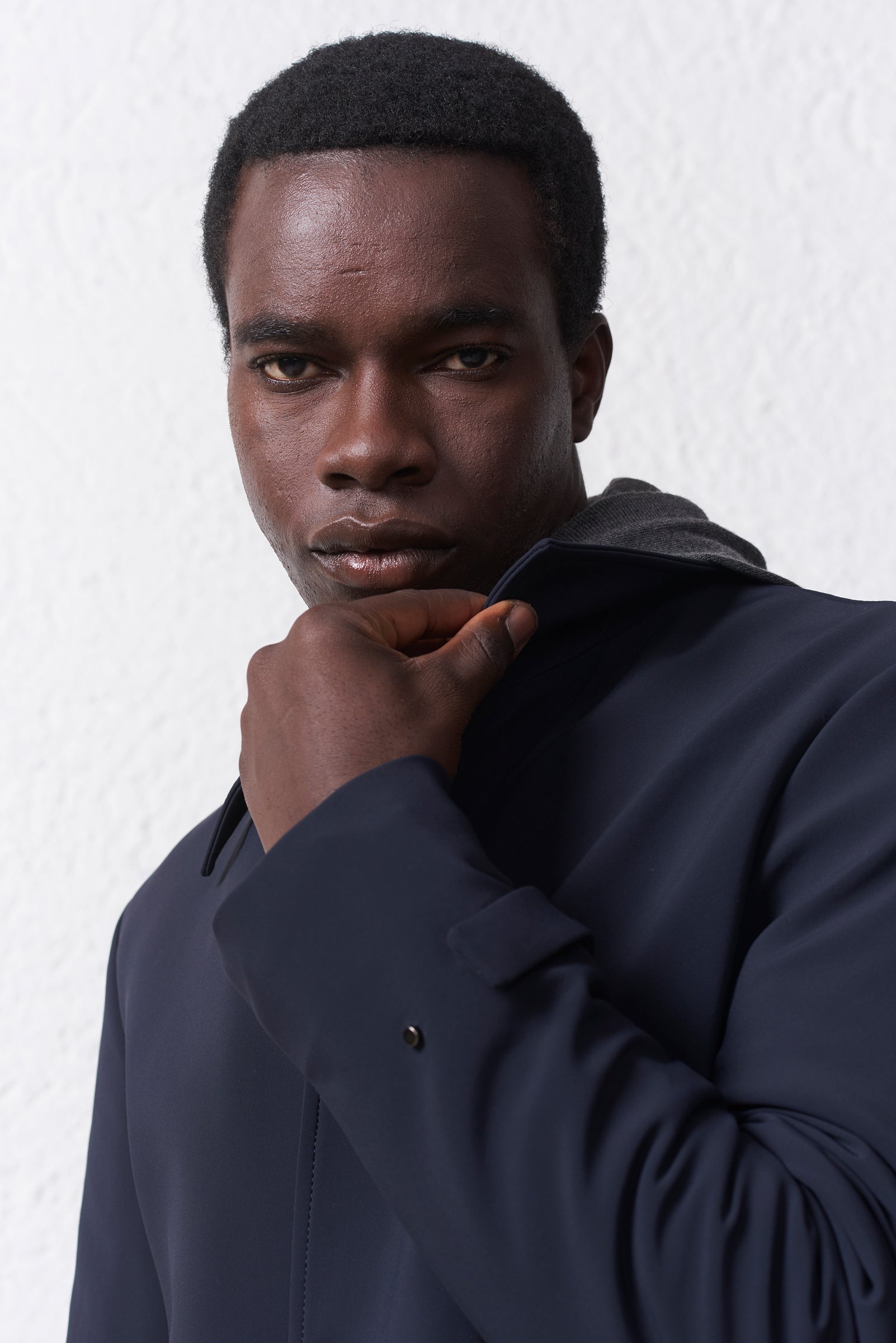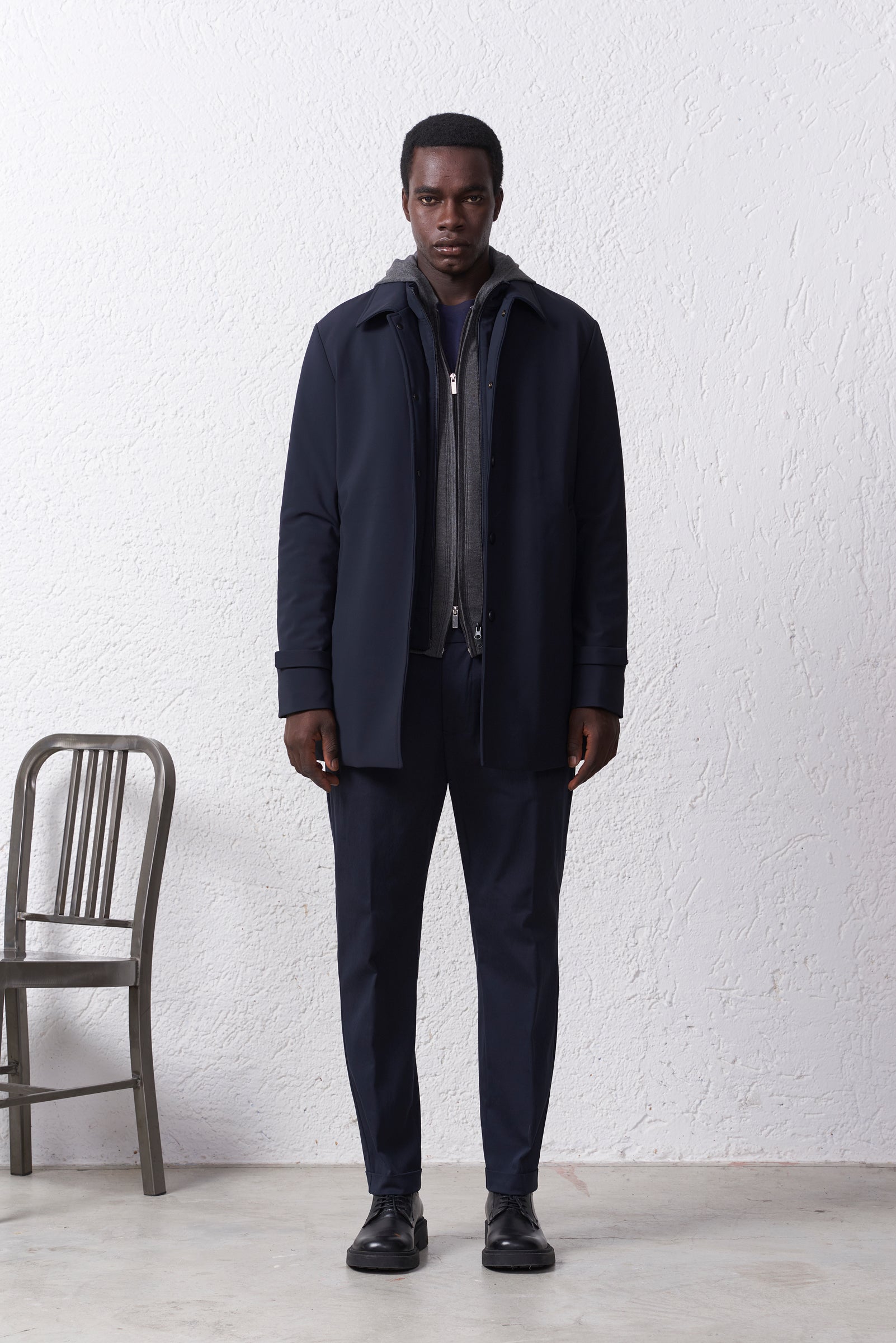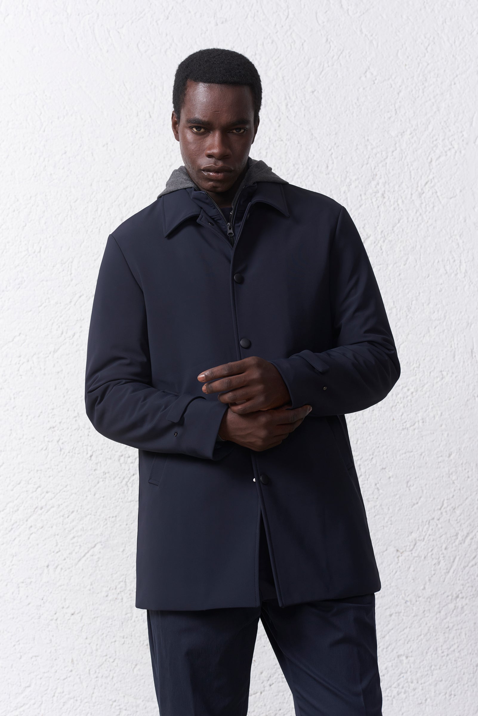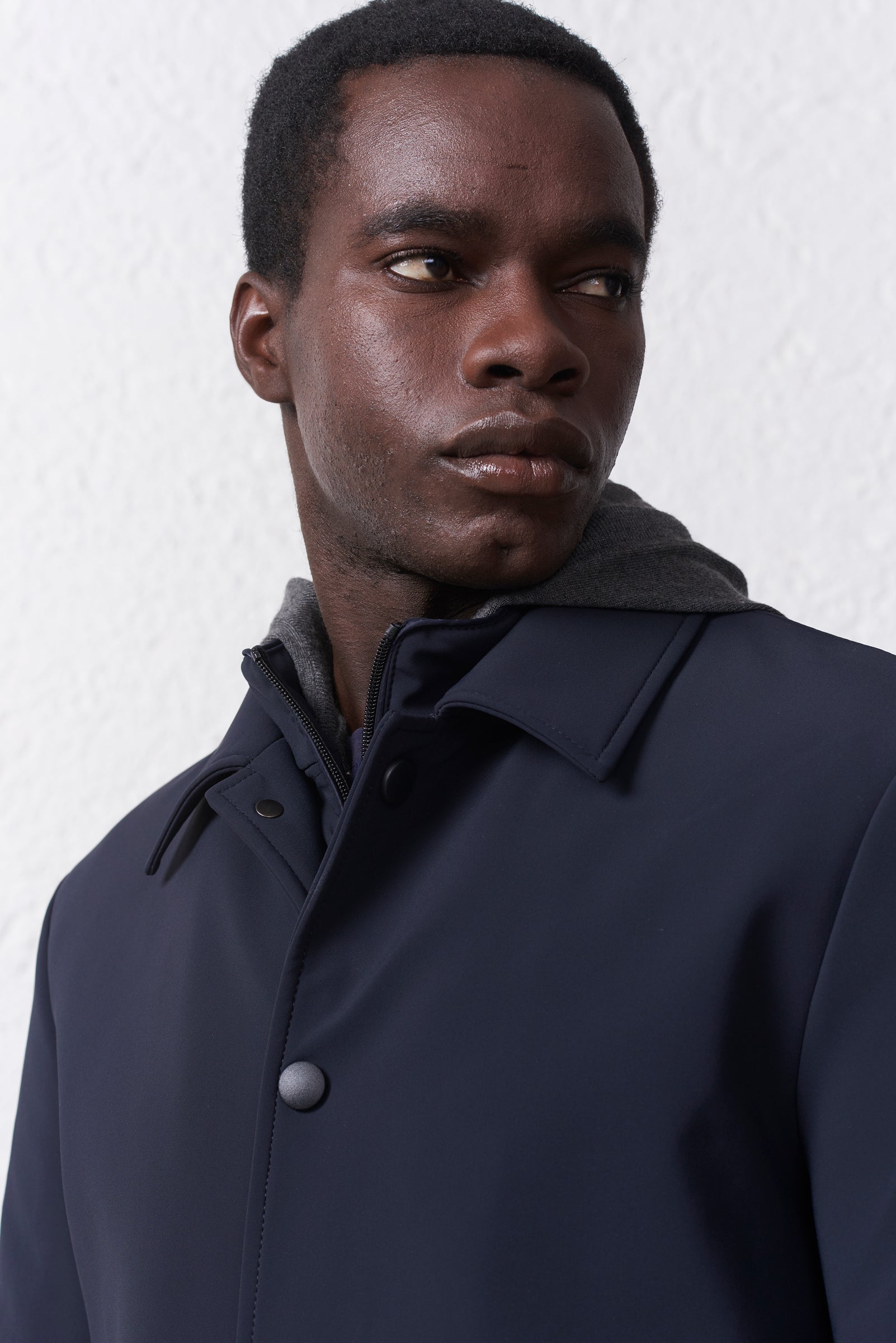 Giubbino trench uomo idrorepellente, collo camicia, pettorina removibile e imbottitura ecologica. Stile e protezione per tutte le stagioni.