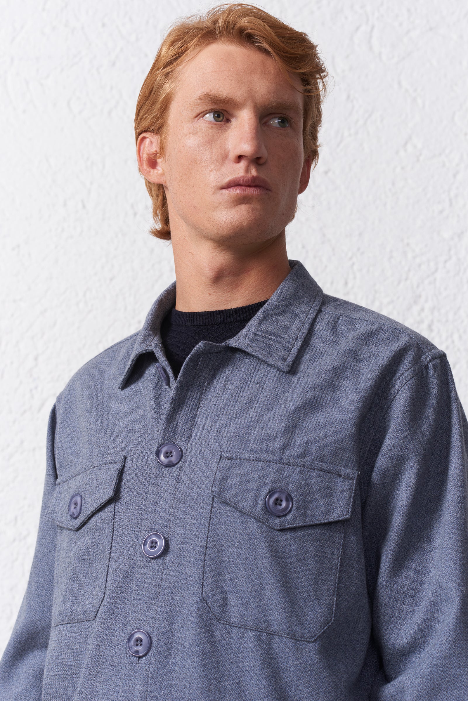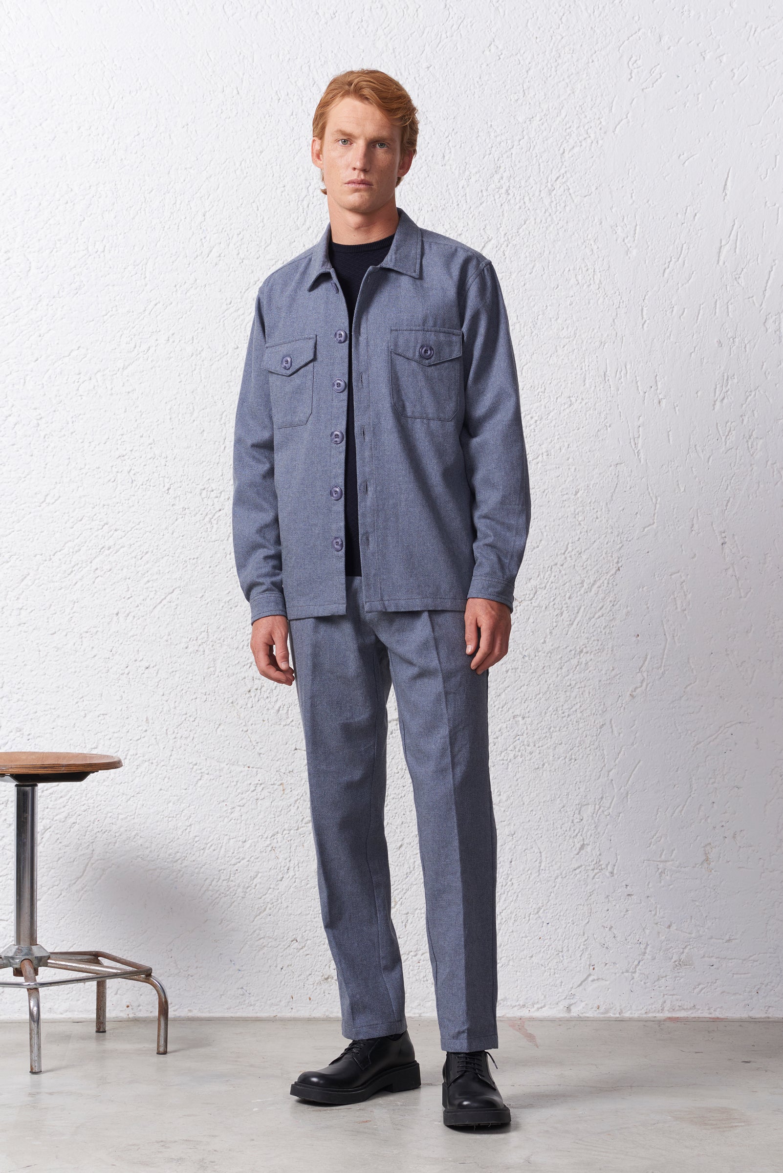 Overshirt uomo dal taglio contemporaneo, realizzata in morbida flanella di cotone che garantisce calore, comfort e uno stile versatile in ogni occasione. Il capo presenta una linea regolare con colletto classico e chiusura centrale a bottoni, due pratiche tasche applicate sul petto con pattina e bottone per uno stile utility attuale. Le maniche hanno polsini abbottonati che permettono regolazione e utilizzo anche come sovracamicia nei look a strati. Le varianti colore denim e grigio si prestano ad accostamenti sia casual che più curati, valorizzando outfit autunnali e invernali.