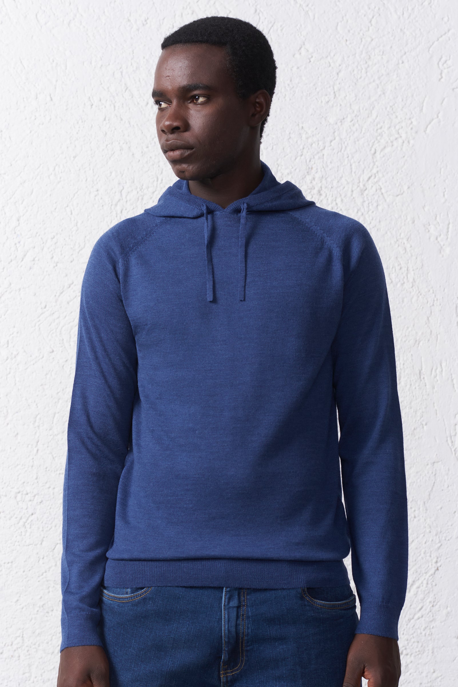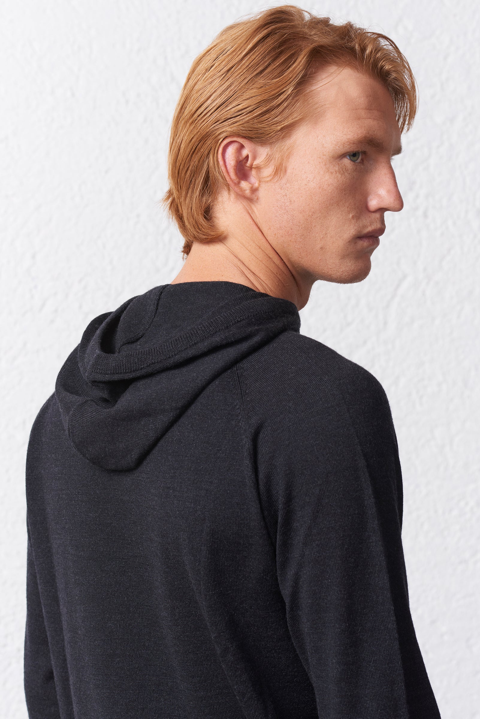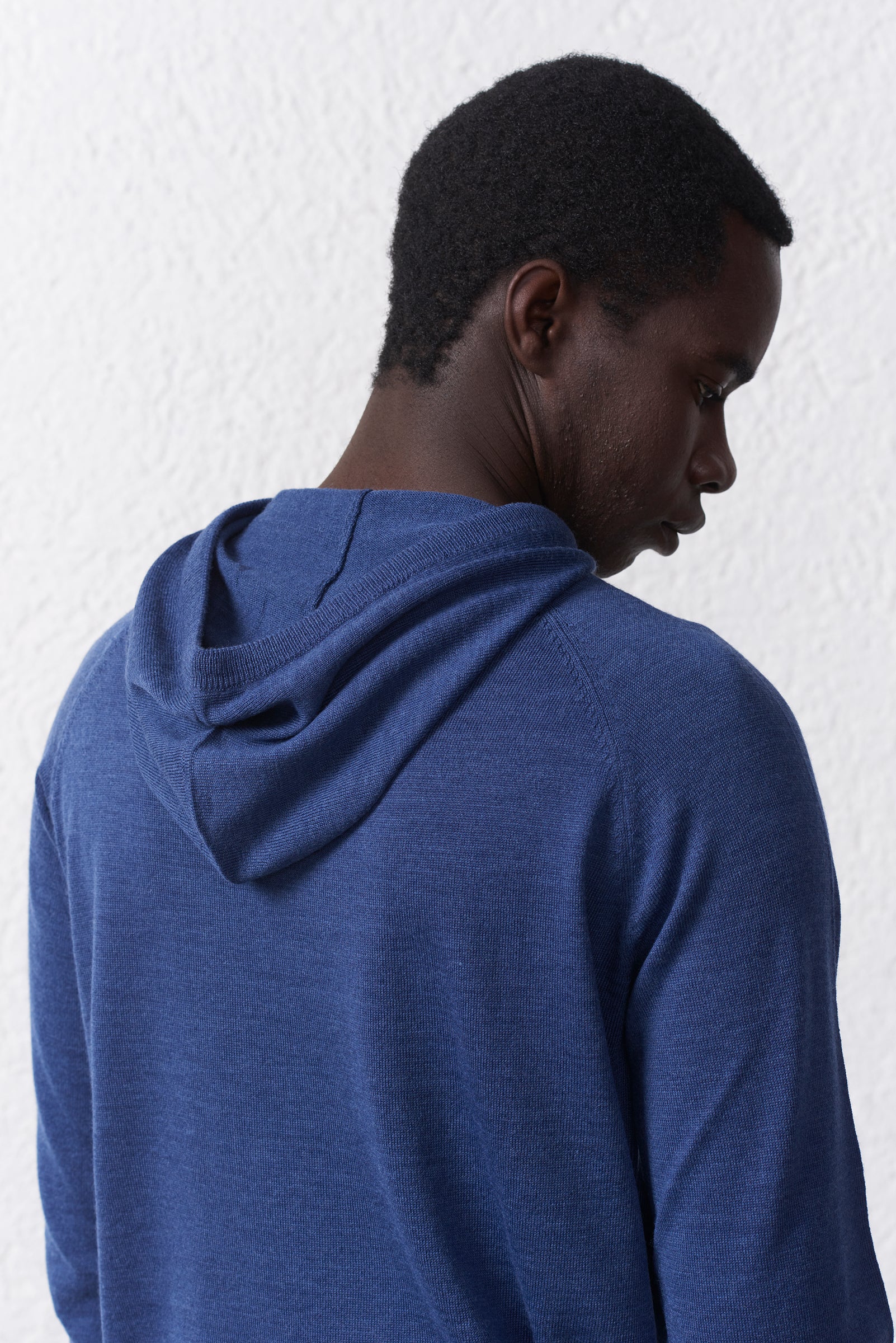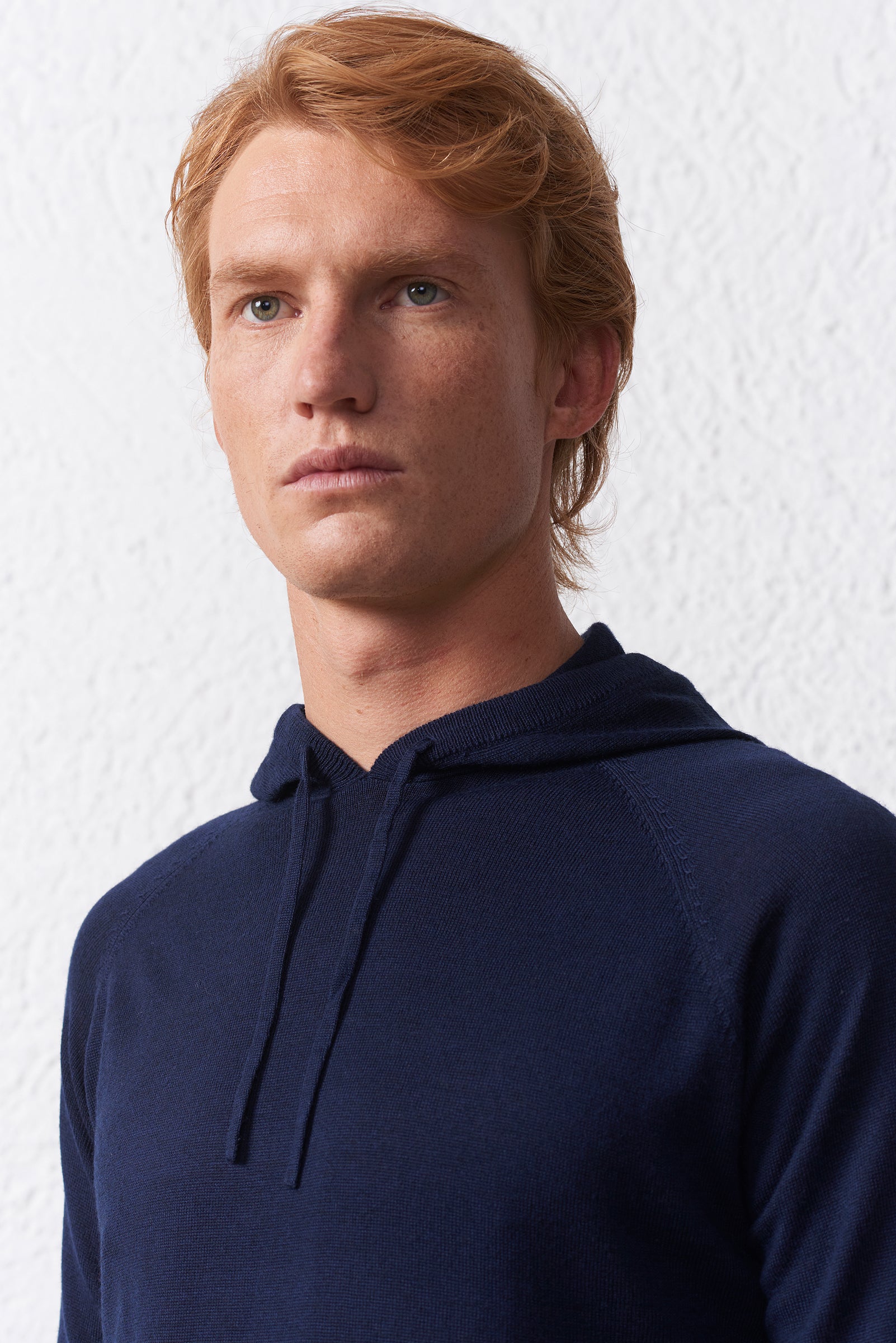 Maglia uomo con cappuccio realizzata in pregiato misto lana merinos e lavorata con tecnica a calatura per una rifinitura pulita e resistente. Il filato finezza 12, con composizione 50% merinos e 50% acrilico, assicura morbidezza al tatto, leggerezza e comfort termico nelle stagioni intermedie. Il design richiama la praticità della felpa ma la reinterpreta in chiave raffinata: il cappuccio con coulisse abbinata unisce stile contemporaneo e funzionalità, mentre i polsini e il fondo sono elasticizzati con costine 1/1 per una vestibilità stabile e duratura. Disponibile in un’ampia gamma colori.