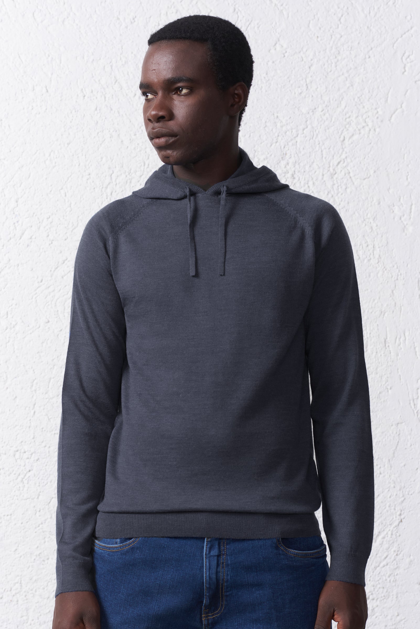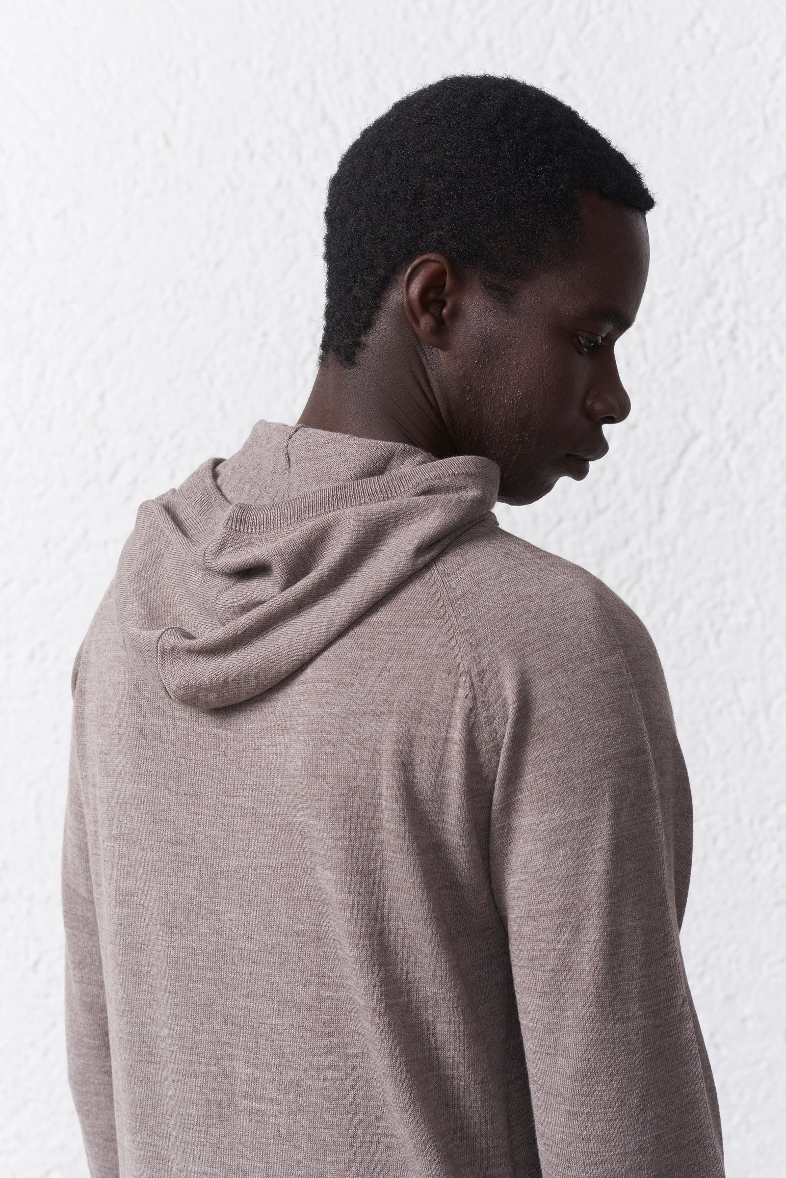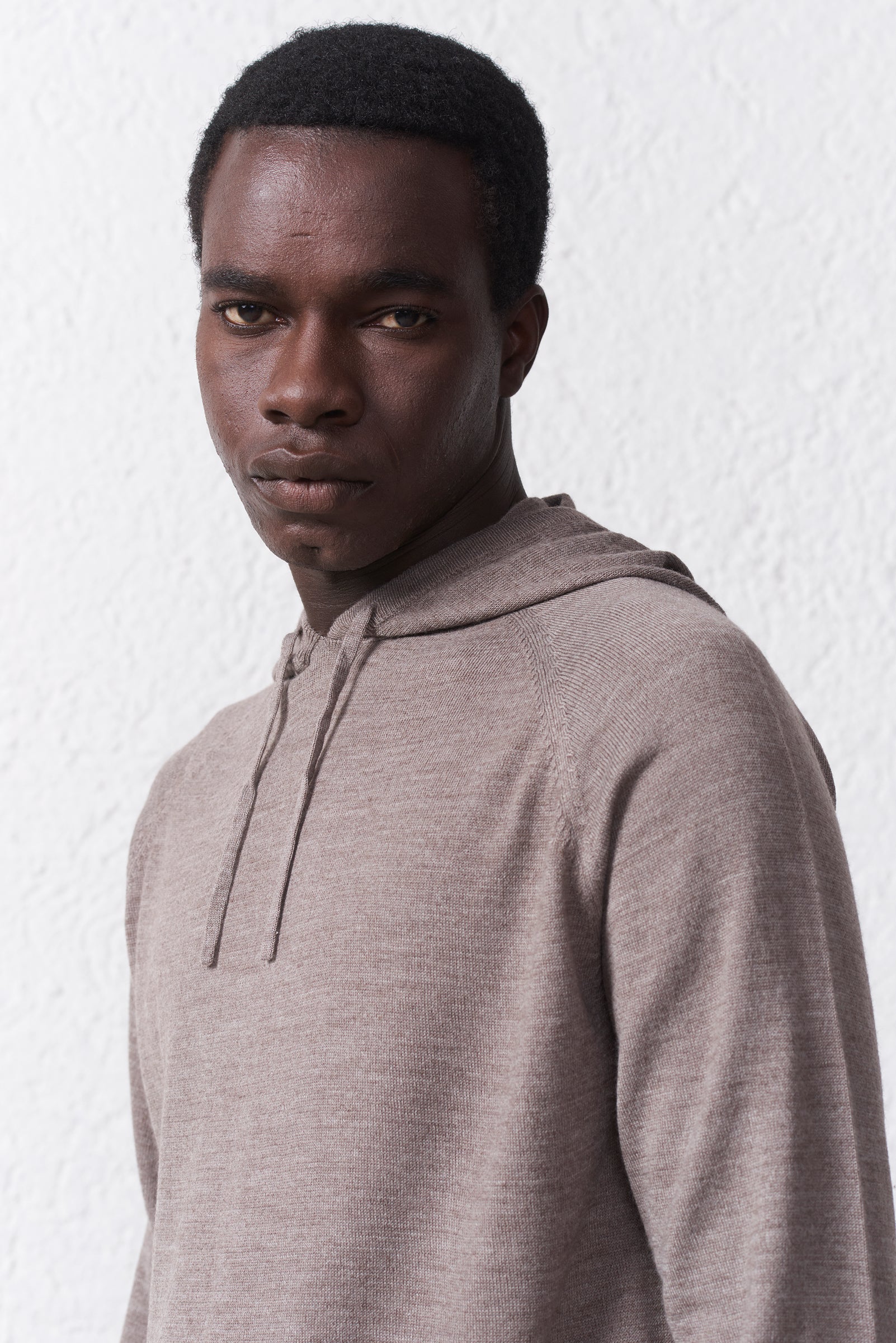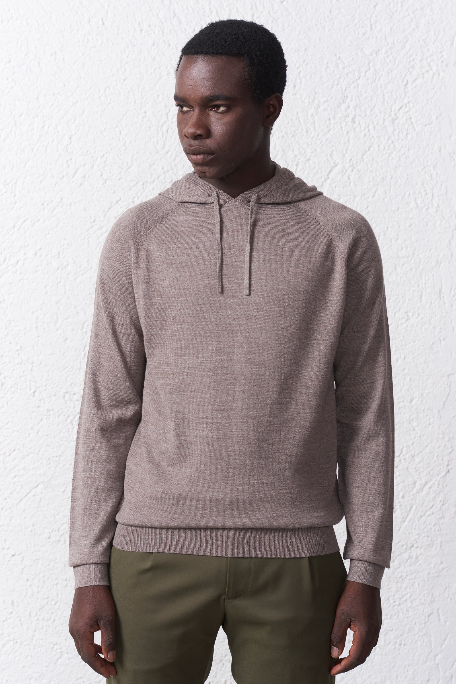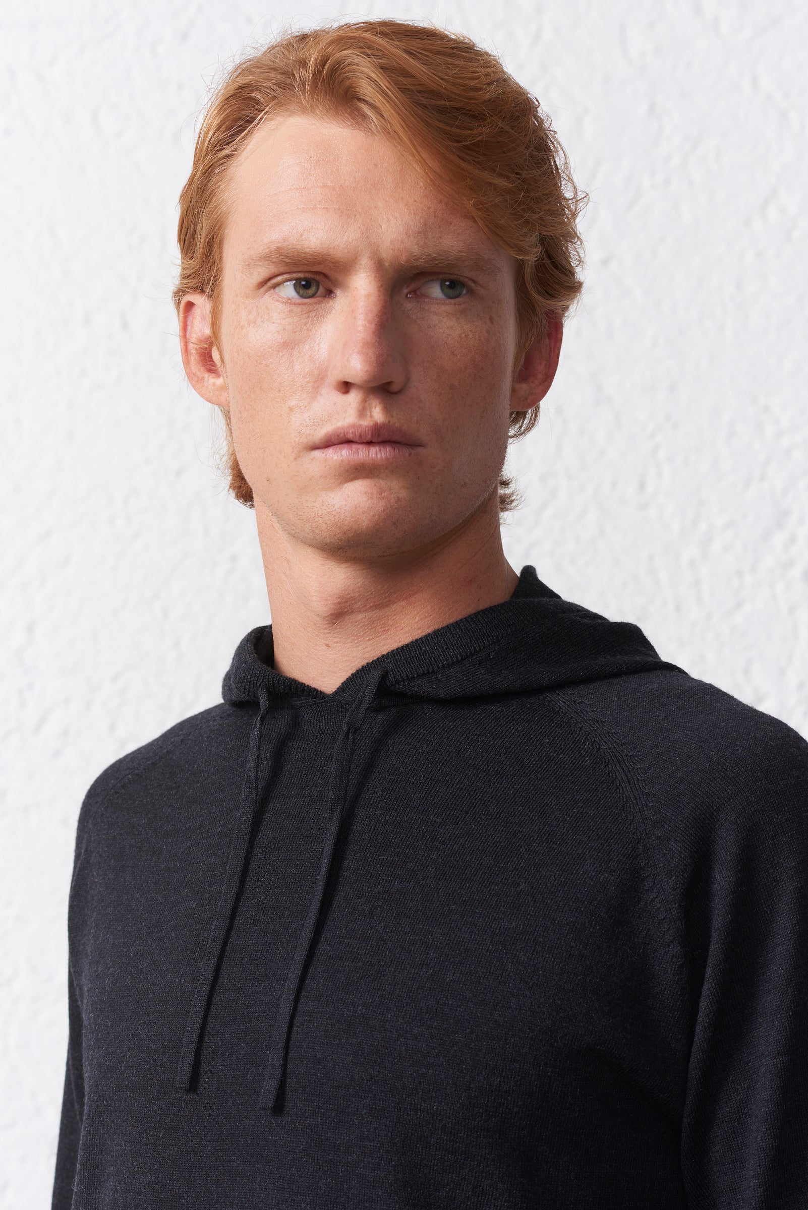 Maglia uomo con cappuccio realizzata in pregiato misto lana merinos e lavorata con tecnica a calatura per una rifinitura pulita e resistente. Il filato finezza 12, con composizione 50% merinos e 50% acrilico, assicura morbidezza al tatto, leggerezza e comfort termico nelle stagioni intermedie. Il design richiama la praticità della felpa ma la reinterpreta in chiave raffinata: il cappuccio con coulisse abbinata unisce stile contemporaneo e funzionalità, mentre i polsini e il fondo sono elasticizzati con costine 1/1 per una vestibilità stabile e duratura. Disponibile in un’ampia gamma colori.
