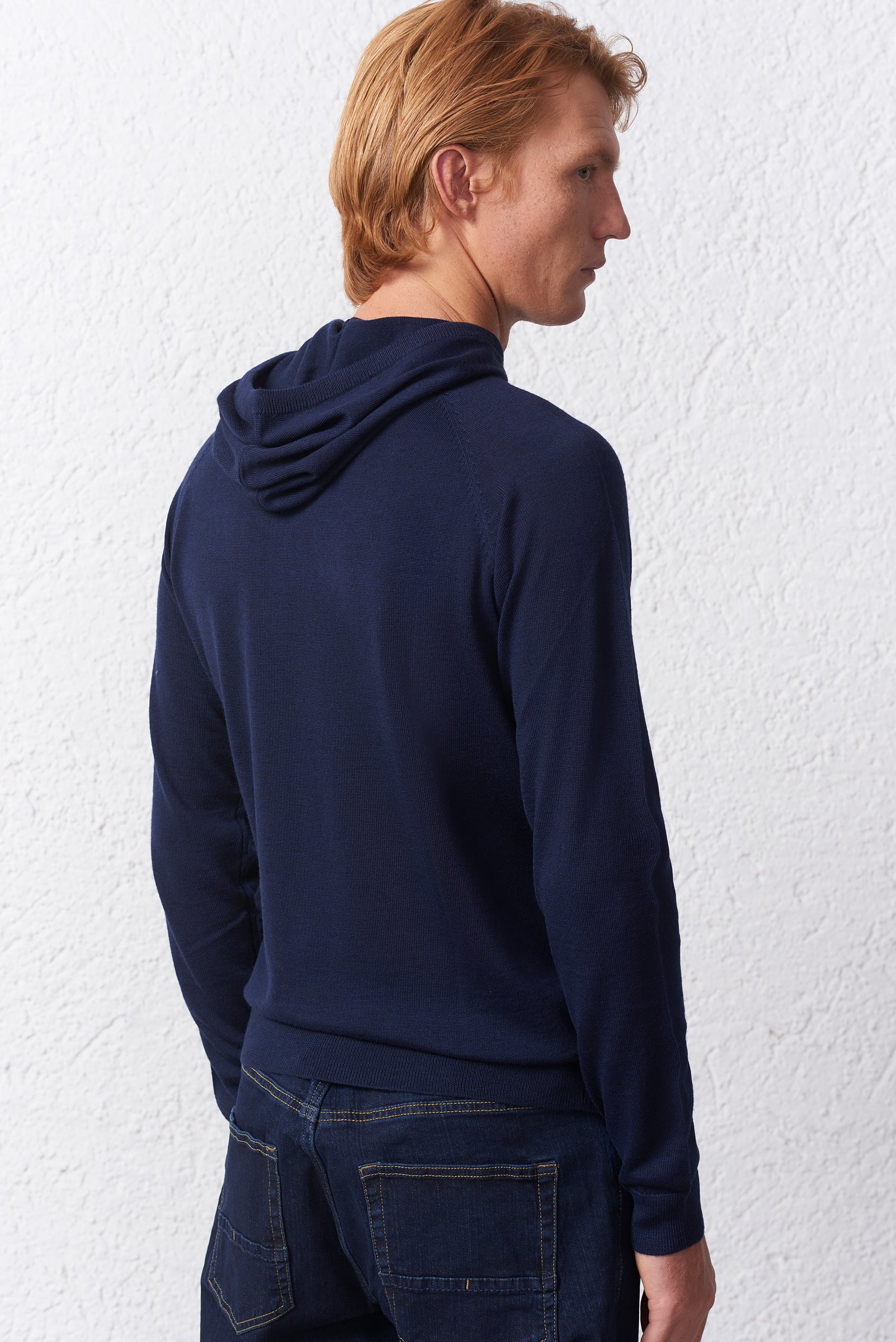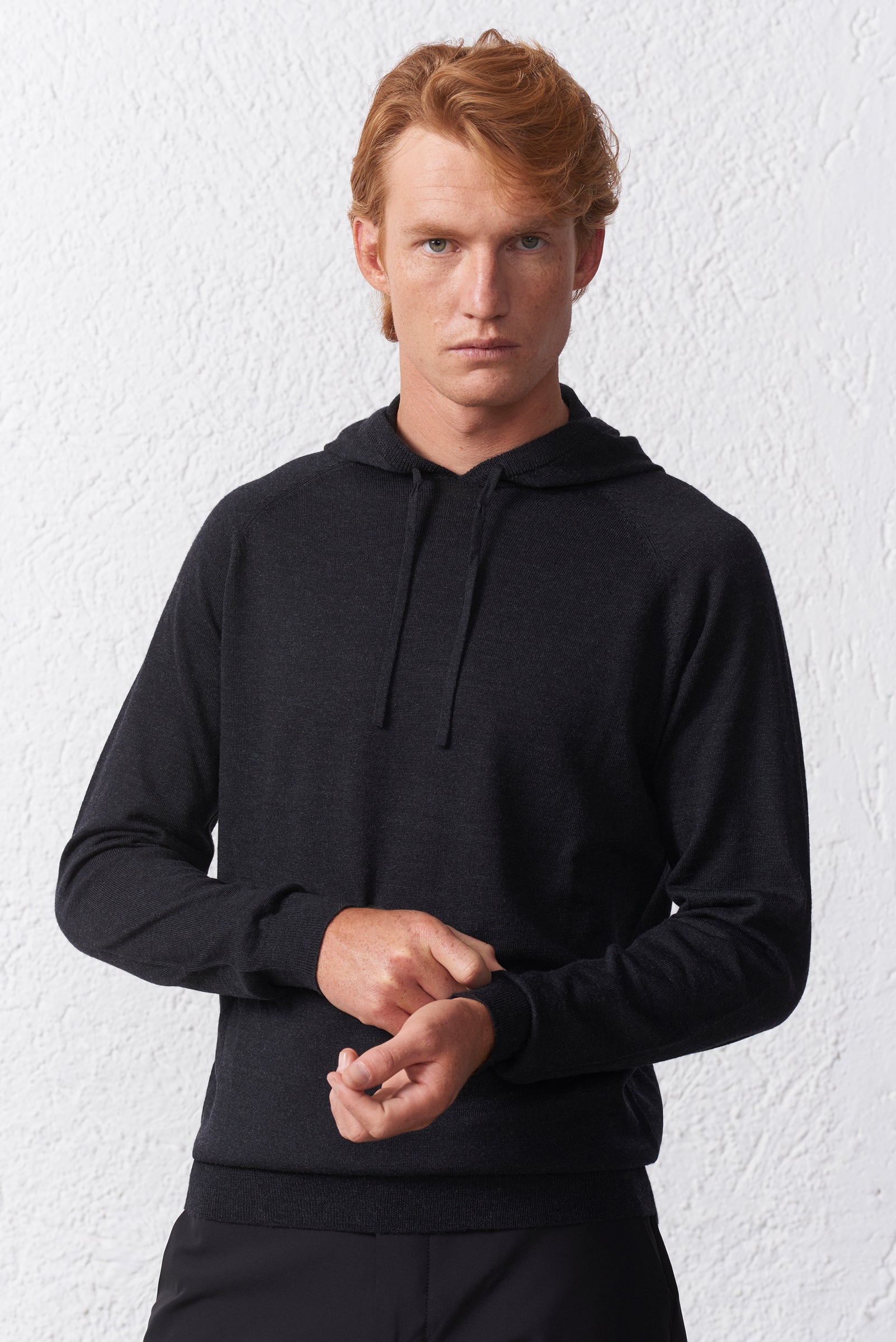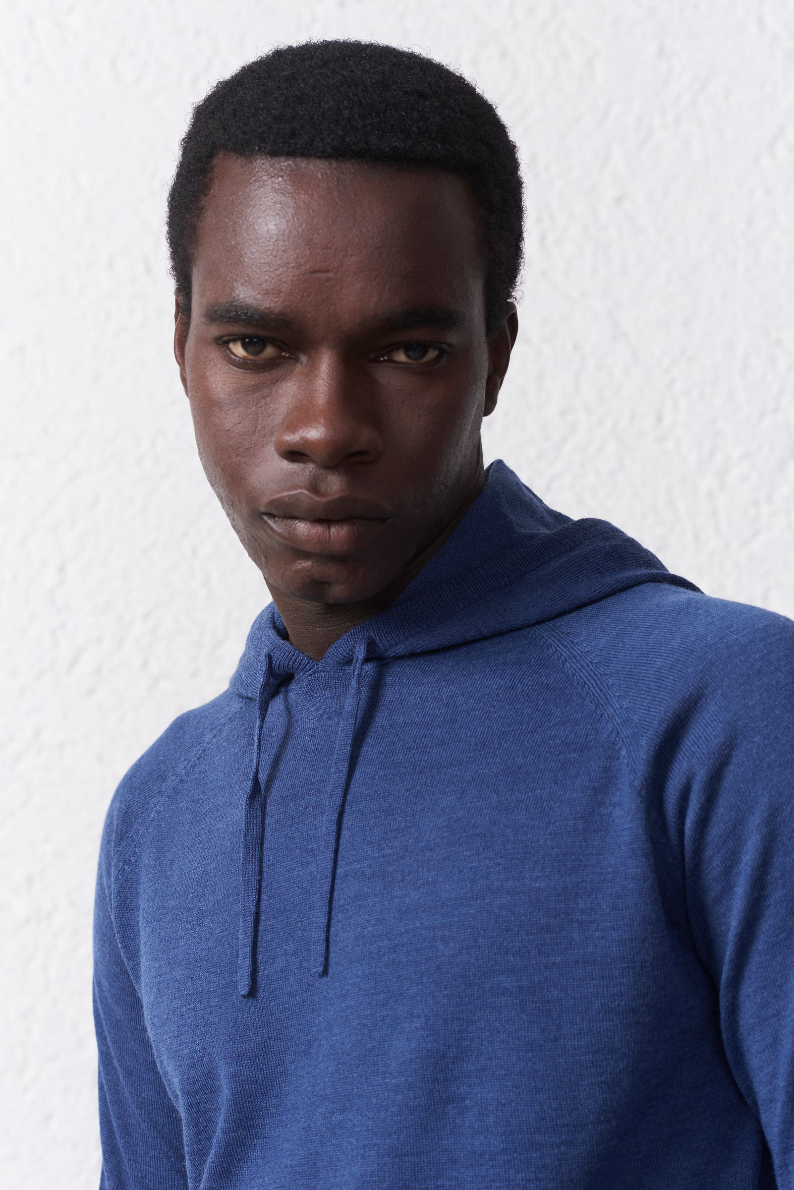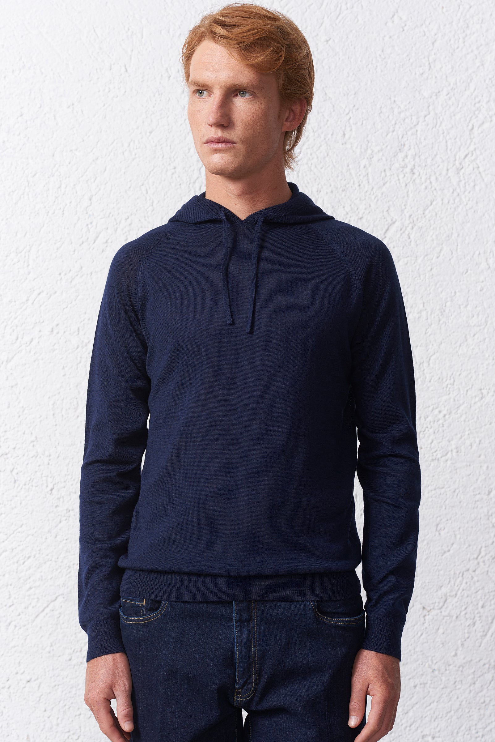 Maglia uomo con cappuccio realizzata in pregiato misto lana merinos e lavorata con tecnica a calatura per una rifinitura pulita e resistente. Il filato finezza 12, con composizione 50% merinos e 50% acrilico, assicura morbidezza al tatto, leggerezza e comfort termico nelle stagioni intermedie. Il design richiama la praticità della felpa ma la reinterpreta in chiave raffinata: il cappuccio con coulisse abbinata unisce stile contemporaneo e funzionalità, mentre i polsini e il fondo sono elasticizzati con costine 1/1 per una vestibilità stabile e duratura. Disponibile in un’ampia gamma colori.