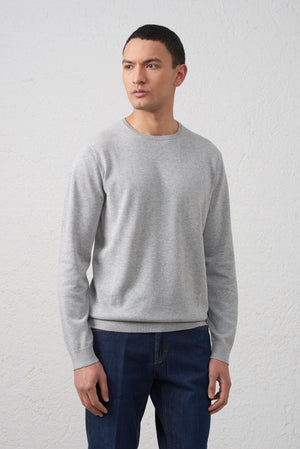 Maglia Girocollo Grigio Melange in Cotone Filato 2/40