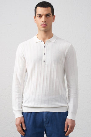 Polo in Maglia Manica lunga in Cotone Filato 2/60 Bianco
