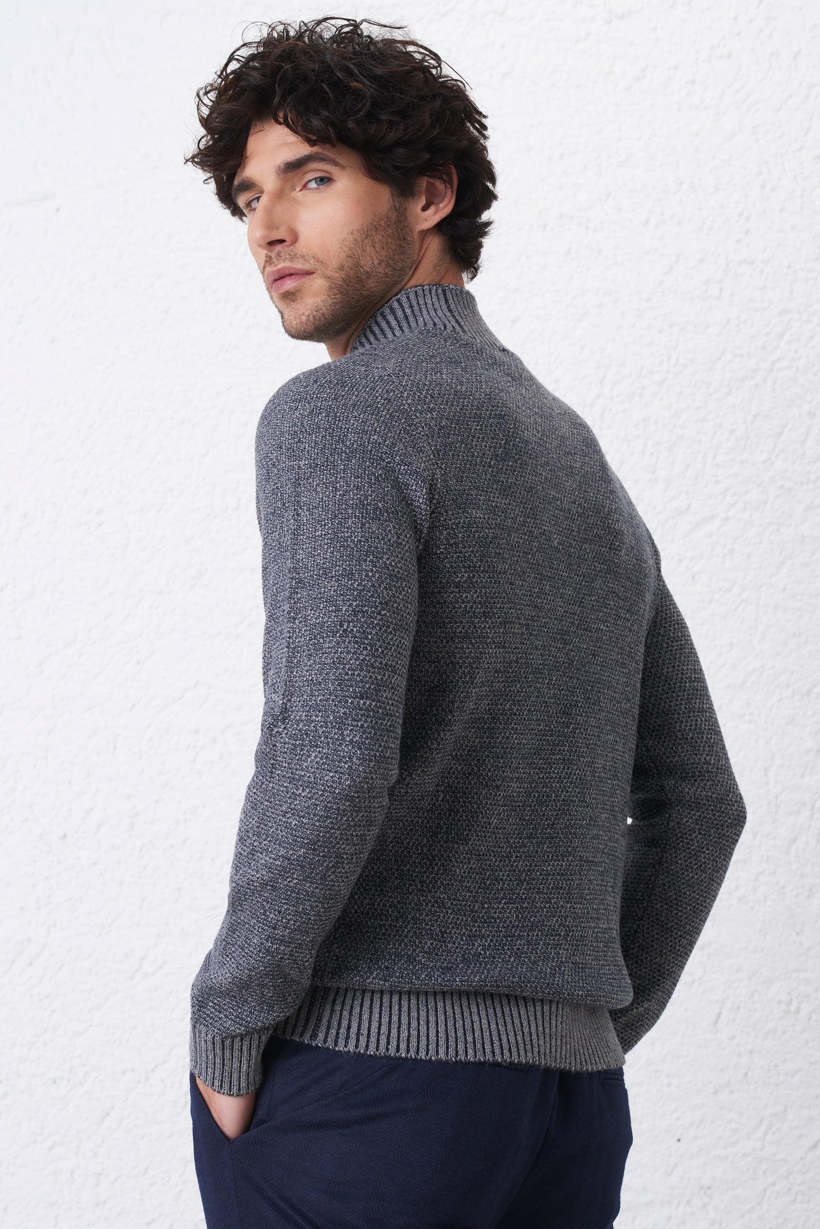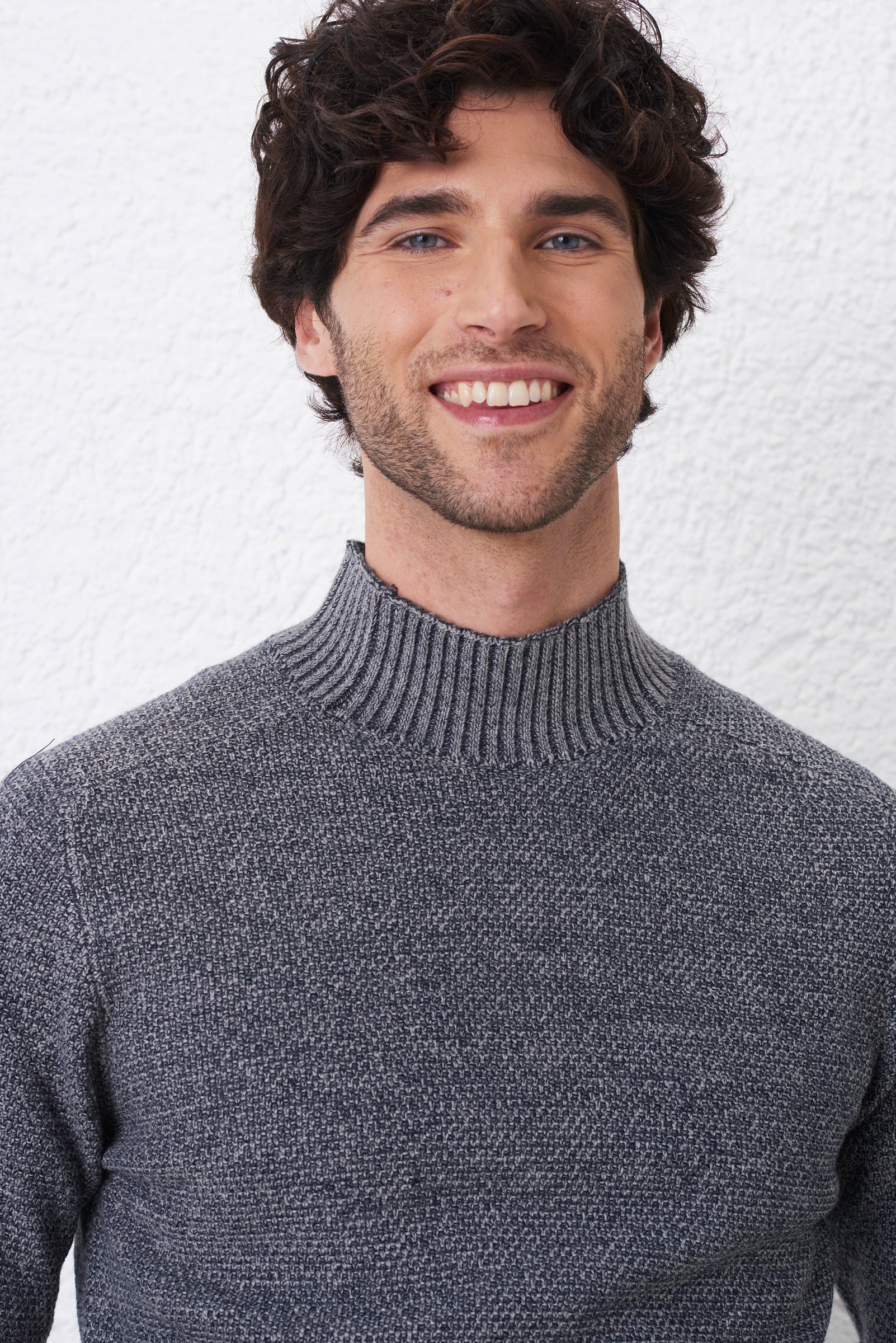 Maglia uomo girocollo in misto viscosa lavorata con tecnica calata che assicura resistenza, comfort e una rifinitura senza cuciture visibili. La superficie operata offre una texture tridimensionale e moderna, valorizzata dal tessuto in lana con finezza 7. I polsi e il fondo sono rifiniti a costine 1/1, garantendo elasticità e durevolezza anche dopo numerosi lavaggi. Questa maglia a maniche lunghe, dal look versatile, è perfetta sia sotto giacche formali sia su pantaloni chino o denim per uno stile urban chic. Nei toni accesi, come il blu ottanio delle foto, valorizza carnagione e look, mentre abbinamenti neutri con beige, grigio o blu notte ne esaltano la versatilità in contesto business e smart-casual.